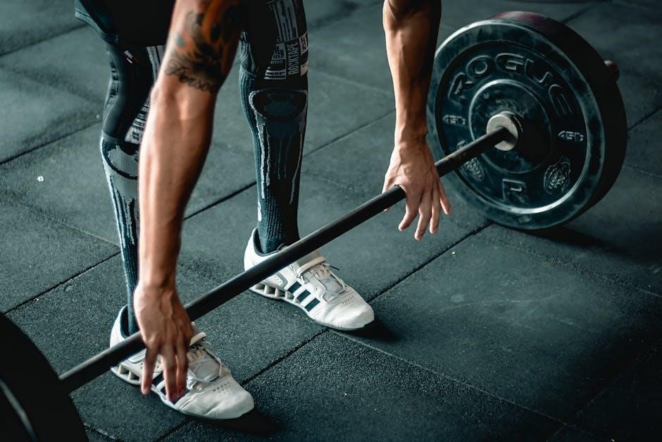 Engage all major muscle groups with targeted exercises‚ including legs‚ chest‚ back‚ shoulders‚ and arms‚ for a complete and balanced fitness routine!