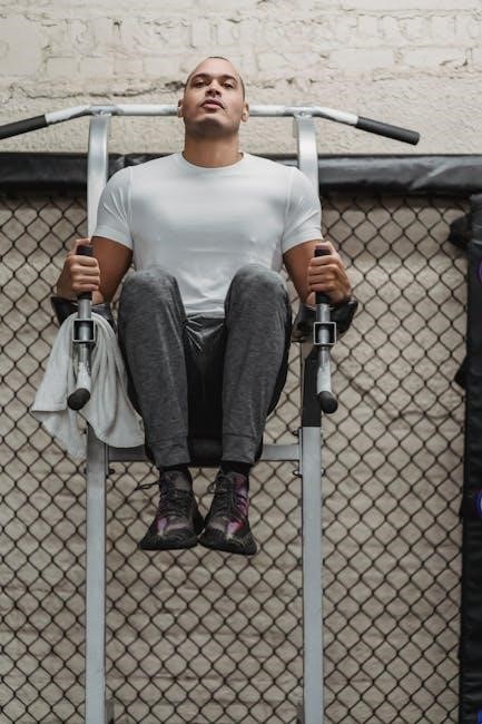 Simulate a lat pulldown exercise using a resistance tube and a door anchor for a challenging back workout․ Securely attach the door anchor to a sturdy door‚ ensuring it’s properly positioned and closed․ Thread the resistance tube through the door anchor․ Grasp the tube’s handles with an overhand grip‚ slightly wider than shoulder-width․